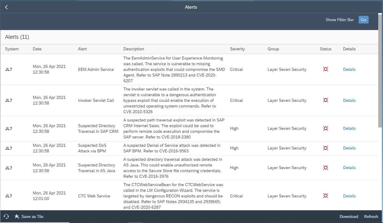 The investigation performed for the report identified over 300 successful exploitations of SAP systems. This included attempts to modify users and configurations and exfiltrate business information. Most of the exploits targeted the six CVEs below. Although the vulnerabilities have been patched by SAP, many organizations have not applied the recommended mitigations to protect SAP systems.